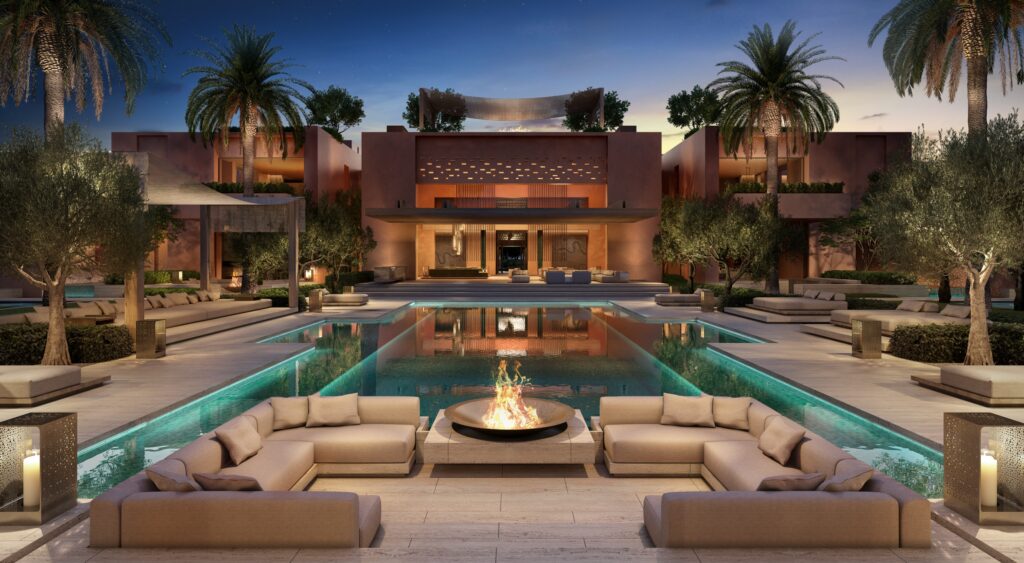 Nestled in the Moroccan landscape, Villa Amanjena offers an authentic cultural experience with modern luxury. Its architecture is inspired by traditional Moorish designs, featuring courtyards, archways, and gardens that create a serene atmosphere. The villa is designed for those who want a retreat surrounded by history, while still enjoying modern comforts like a private pool, personalized staff, and spacious indoor-outdoor living.
